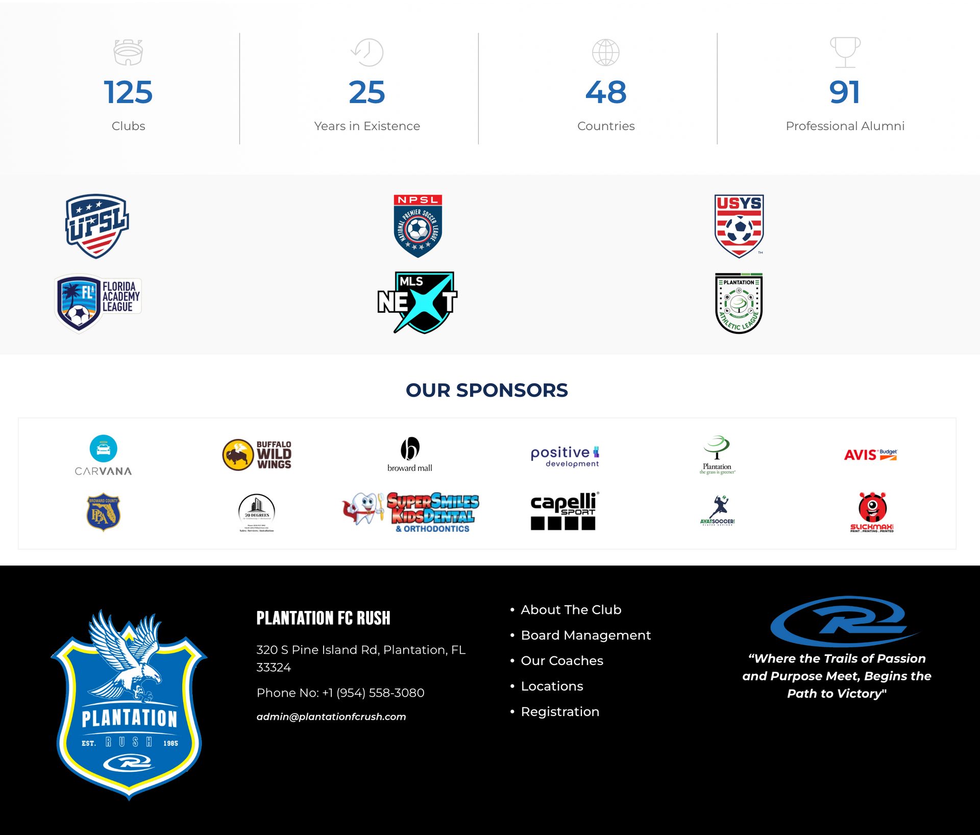 At Plantation FC Rush, we aim to develop tomorrow’s leaders through teamwork, community engagement, and family integration. We are dedicated to enhancing our players' soccer skills, decision-making abilities, teamwork, and active participation in their communities.